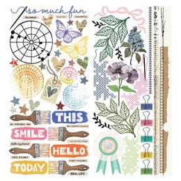 Each piece is precisely laser cut for clean, professional edges that would be difficult to achieve by hand. The assortment includes inspiring sentiments and titles to anchor your storytelling, soft organic florals that add a natural touch, and creative icons such as brushes, palettes, and other maker-inspired imagery. You’ll also find whimsical textures and vintage haberdashery-style designs, along with a versatile variety of icons that coordinate beautifully with the entire Artful Moments collection.