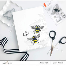 Have you ever wished for a special detailed stamp portraying a honeybee? Well, now you can have one! This unique mini stamp & die set features a fun multi-layered bee and coordinating sentiments. We are sure you will have fun creating amazing handmade projects featuring this beautiful bee and the punny sentiments included.