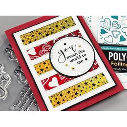 This set is CLEAR. All about You stamp set measures 4"x 4". This versatile stamp set is fabulous for card making and scrapbooking. This stamp set is made of premium quality photopolymer and is ready to use with acrylic blocks.