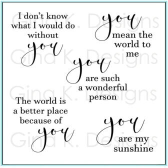 Greetings Include: I don't know what I would do without you, You mean the world to me, You are such a wonderful person, The world is a better place because of you, You are my sunshine.