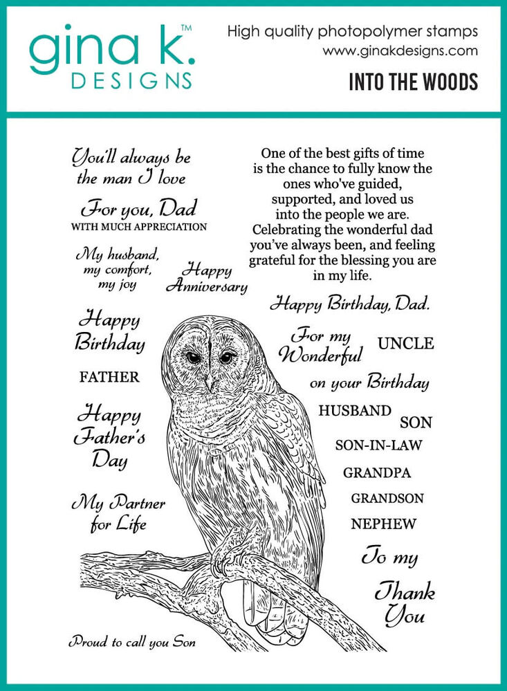 Into the Woods is a stamp set by Hannah Drapinski. This set is made of premium clear photopolymer and measures 6" X 8". Made in the USA.