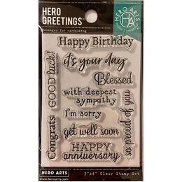 Hero Arts 3" x 4" clear stamp sets offer the best quality in the market. They are made in the USA from genuine photopolymer which is non-toxic, biodegradable, and beautifully transfers ink to paper for a true impression every time. Peel the stamp from its backing and stick to an acrylic block for easy positioning. Mix and match the designs. Cleans up easily with water or stamp cleaner.