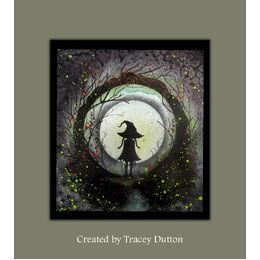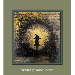 A delightful silhouette set of two stamps featuring a young witch in her pointed hat.