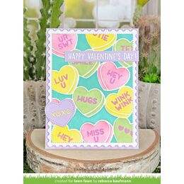 Layer on the love in your projects with this amazing stencil set. This set of 5 stencils layer together to create a lovely background full of candy hearts with fun phrases. These stencils work well with a variety of crafty techniques.