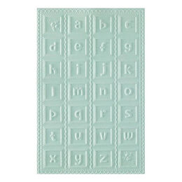 Classic Pooh Baby Blocks 3D Embossing Folder is a 5.50 x 8.50-inch embossing folder with a wonderful background filled with lower case alpha blocks and two buzzing bee blocks framed in a sweet loop design. For interest, punch out the blocks with T-081 1-inch Square Punch (sold separately) and pop them up with foam squares or use individually.