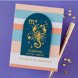 Block Print Scorpio Registration Press + Foil Plate is part of the Block Print Zodiacs Collection. The set of three Press + Foil plates and one acetate printed registration template come together to create a multi-color background and/or design placement of zodiac sign, Scorpio, its symbols, dates and traits. Note the acetate template is only for the BetterPress System and not for the Glimmer Hot Foil System which the heat will distort the acetate. The assembled Scorpio design measures 2.85 x 3.55 in./7.20 x 9.00 cm.