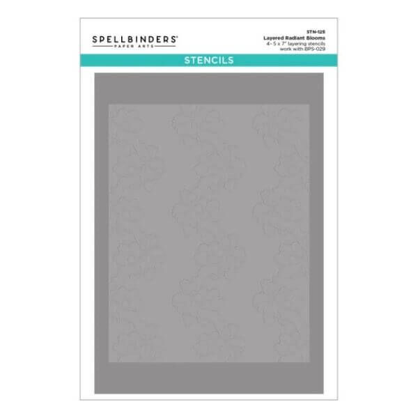 This set of four stencils come together to perfectly add pops of color and dimension to projects created with the Radiant Blooms plate. Three layers of the stencil color different petals, and the fourth allows overall color for the background.