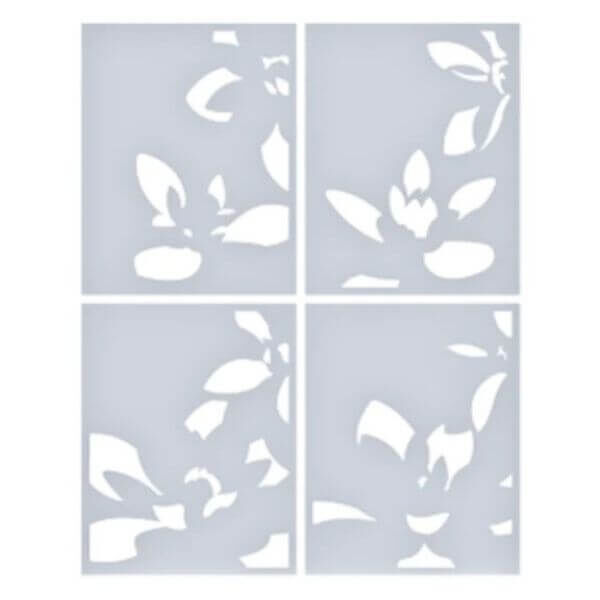 This set of four stencils come together to add color and vibrance to the lovely blooms pressed with the January plate. Each layer of the stencil colors different petals for a stunning, artistic effect.