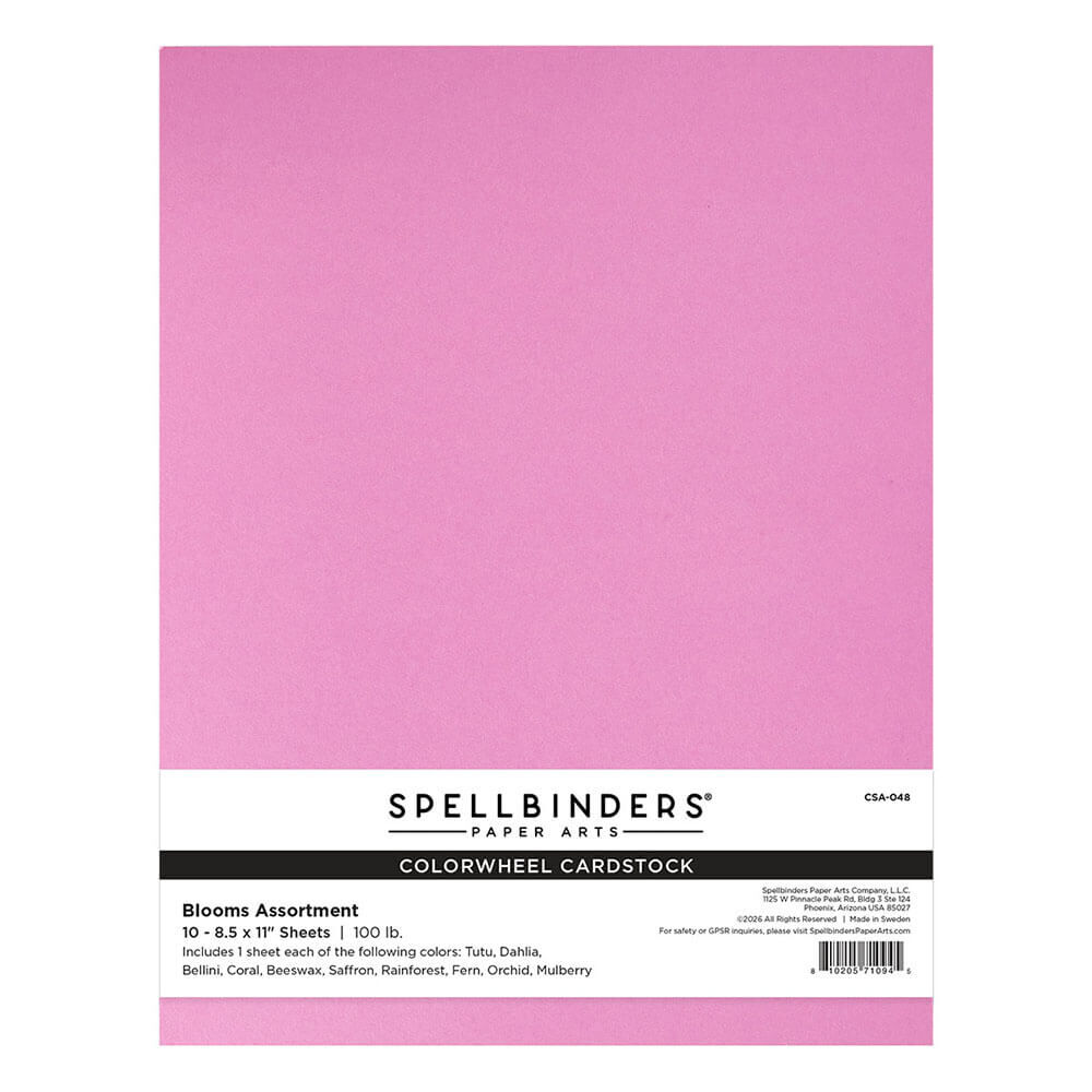 Blooms ColorWheel Cardstock Assortment is a pack of 10 sheets of cardstock 100 lb or 270 gsm in thickness. The cardstock is smooth on both sides and has a solid color core. Every creation starts with a great foundation of high-quality cardstock, so be sure to add this pack to your supplies! Enjoy creating with hues of this flower inspired pack that contains one sheet each of:
