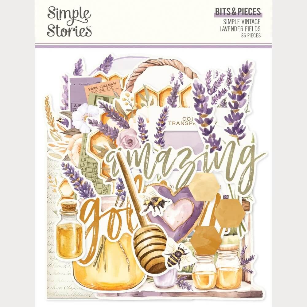 Simple Stories - Simple Vintage Lavender Fields - Bits & Pieces includes 107 die-cut ephemera pieces featuring lavender blooms, phrases, tabs, labels, library cards and more! Use them individually to accent or cluster several for a stunning motif!